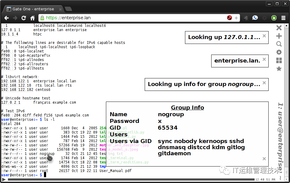 Gate One 可以嵌入到任何 Web 应用程序中。只需要几行 JavaScript 代码!有一个交互式教程介绍了如何在测试目录中嵌入可用的 (hello_embedded)。