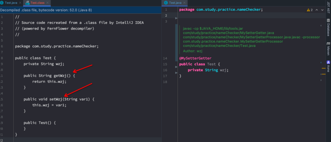 @MySetterGetter // 打上我们的注解public class Test {private String wzj;}