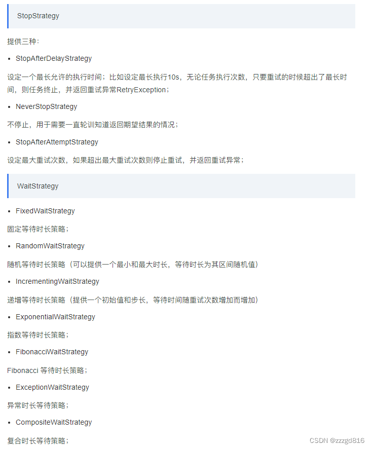 但是明显感觉得到,guava-retry在使用上更便捷,更灵活,能根据方法返回值来判断是否重试,而Spring-retry只能根据抛出的异常来进行重试
