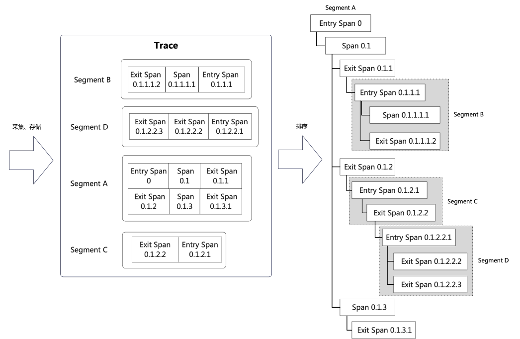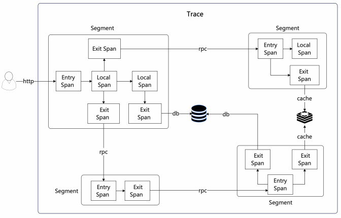 表示一整条调用链,包括跨进程、跨线程的所有Segment的集合。