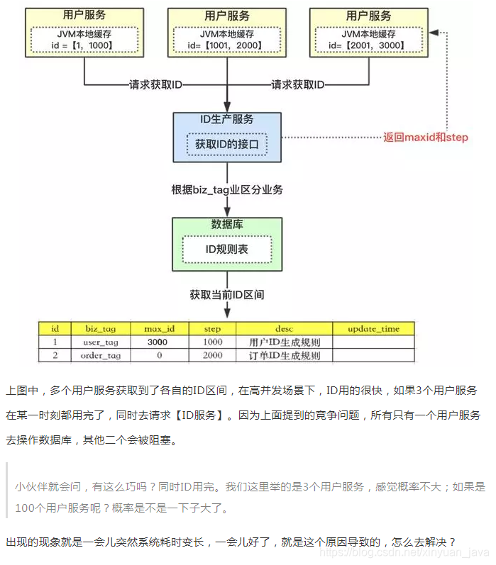 思路我们可以请求数据库得到ID的时候,可设计成获得的ID是一个ID区间段。