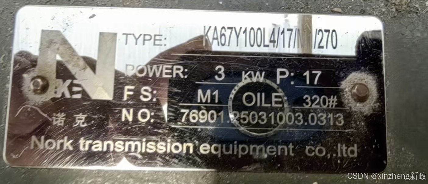 - 生产信息:“NO: 7690125031003.0313”是该减速机的编号,有助于产品的识别、质量追溯和售后服务;“Nork transmission equipment co.,ltd”是生产厂家,即诺克传动设备有限公司。