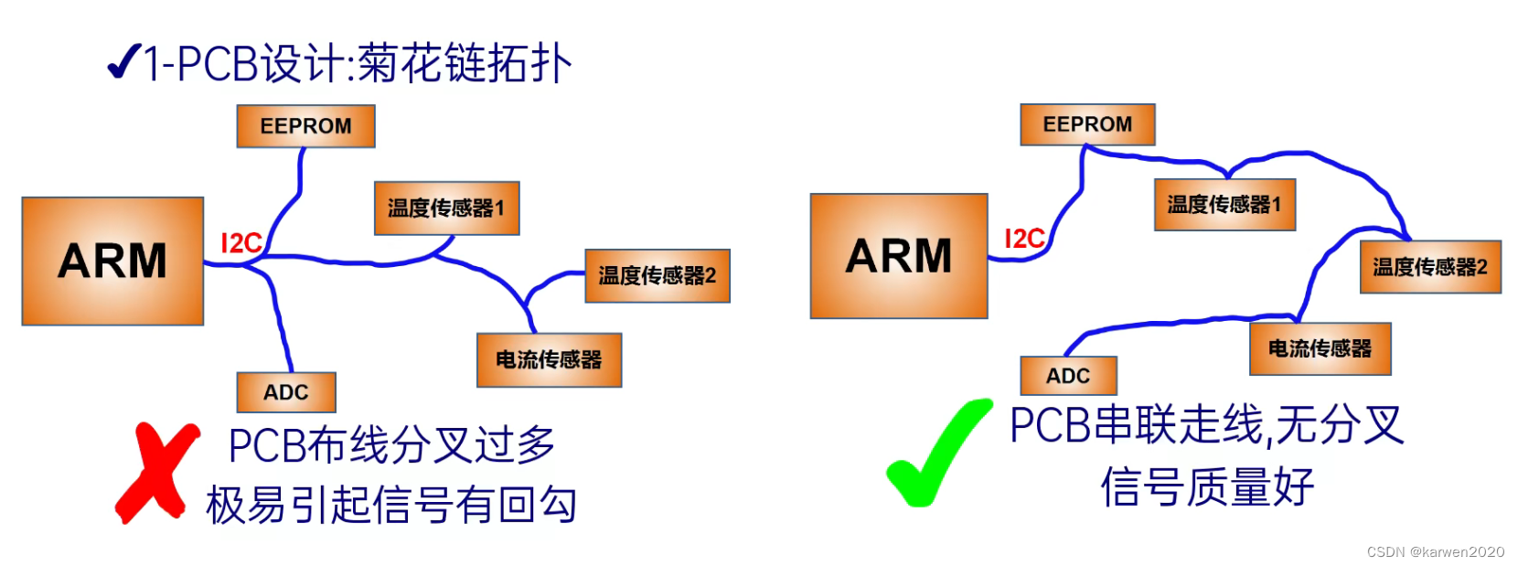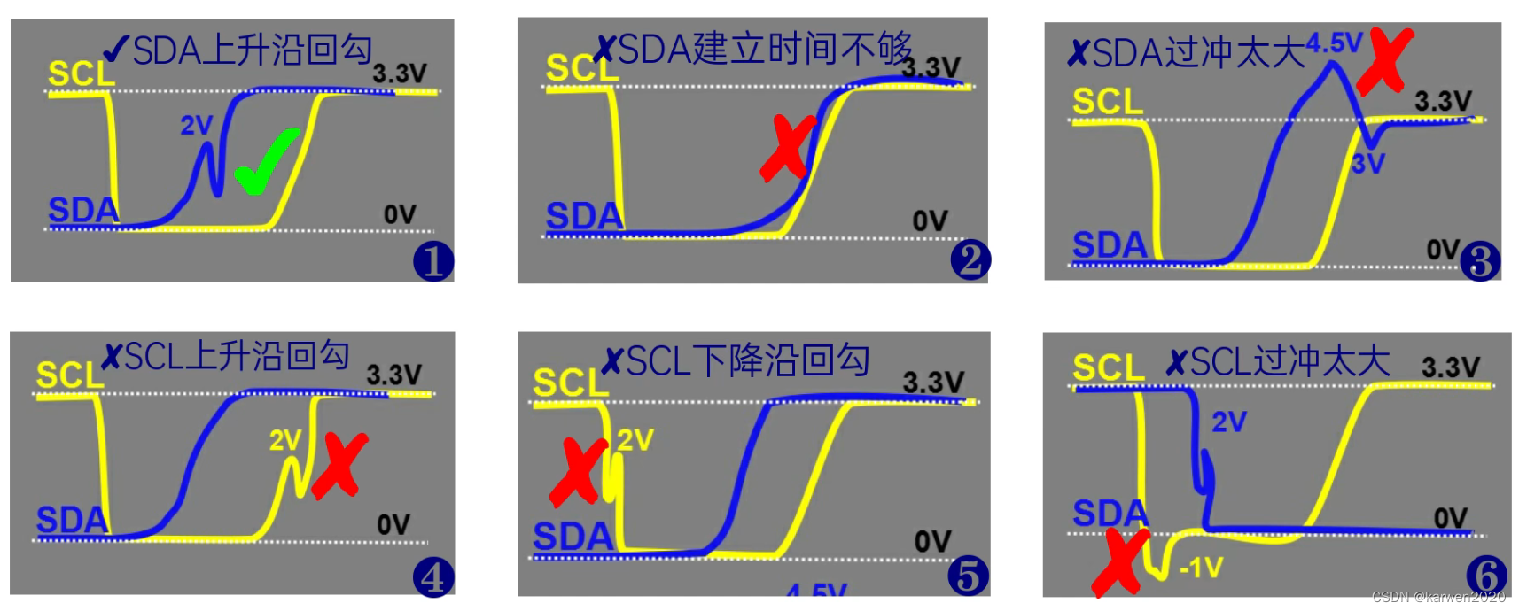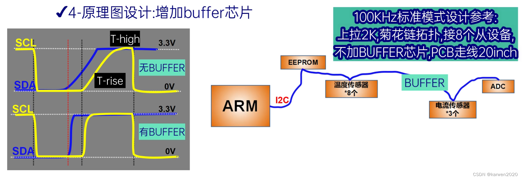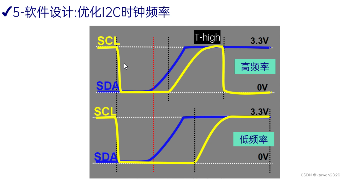 I2C在高电平时读取数据,当总线上的电容过大时,影响SDA总线的充电时间,造成bit位的错误读取。