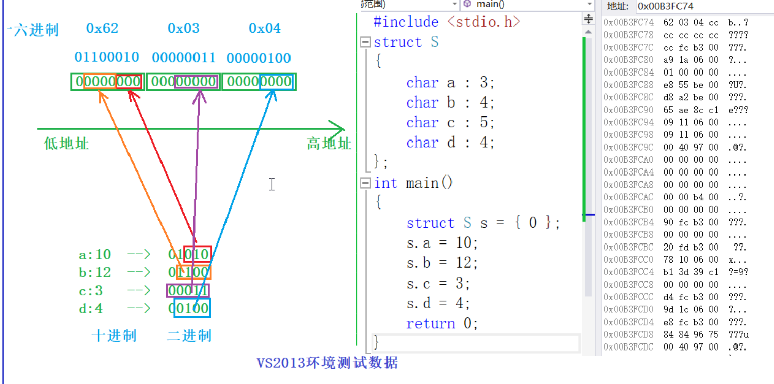 #pragma pack(4)//设置默认对齐数为4,同理改变括号中的数字可以将默认对齐数设为其他数2.位段