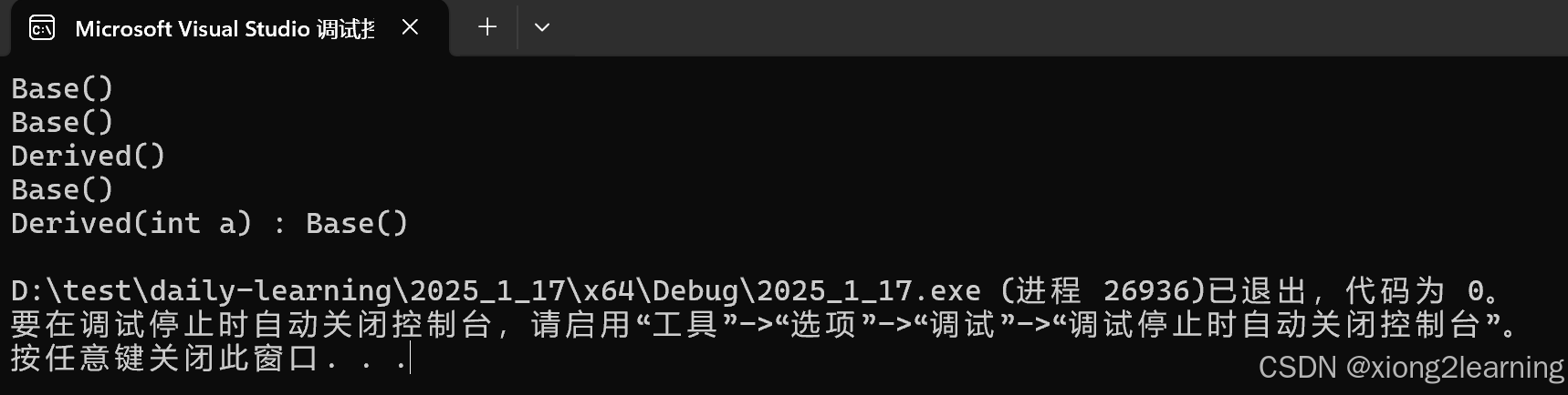 基类构造函数->派生类构造函数->派生类析构函数->基类析构函数