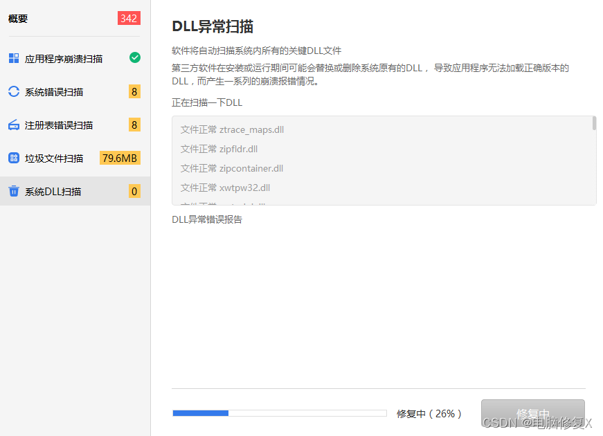 点击一键修复dll错误的按钮,就会自动的帮你扫描电脑系统中缺失的dll文件