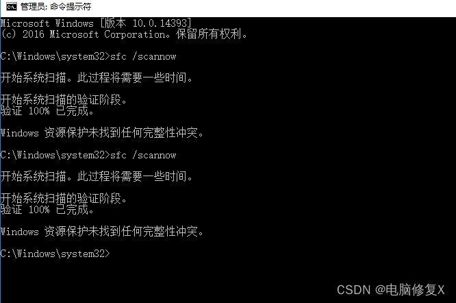 - 输入`sfc /scannow`并按回车键开始扫描。