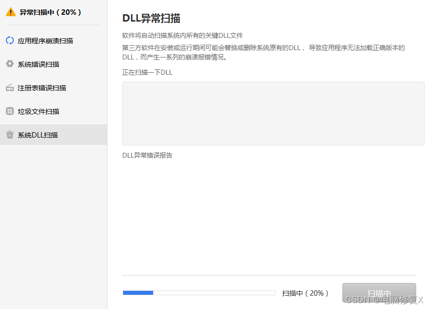 点击一键修复dll错误的按钮,就会自动的帮你扫描电脑系统中缺失的dll文件