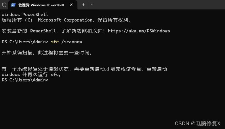 使用 Windows 的系统文件检查器 (SFC) 工具可以扫描并修复损坏的系统文件: