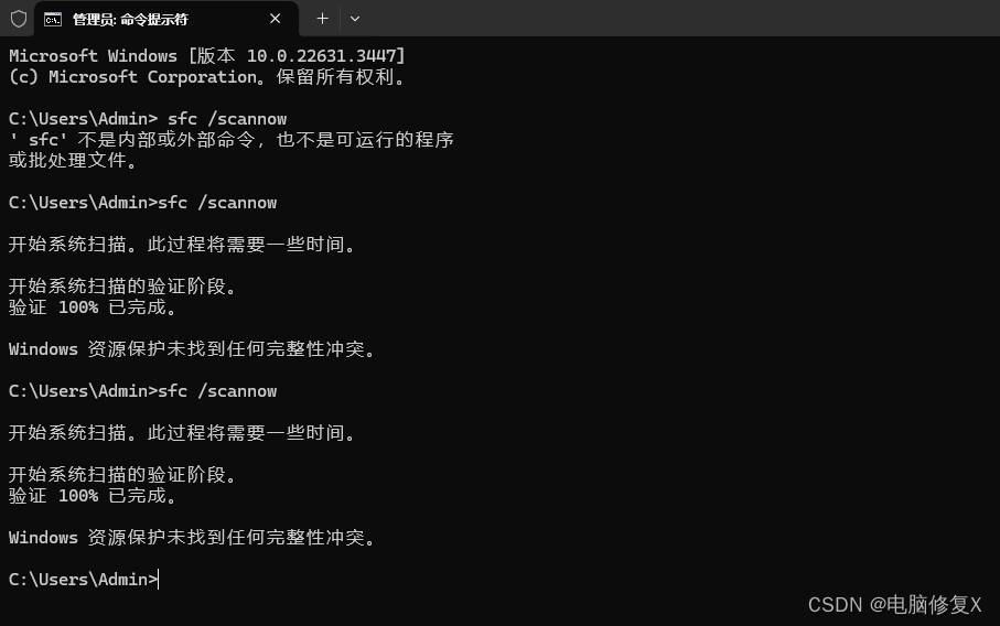 系统文件检查器会开始扫描。等待扫描和修复过程结束。