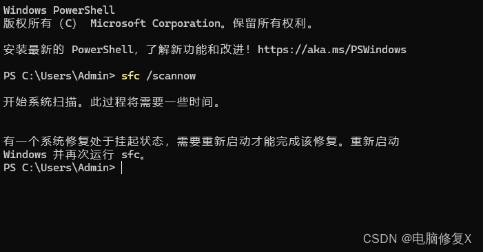 在命令提示符或 PowerShell 中以管理员身份运行 sfc /scannow 命令。系统文件检查器将扫描系统文件并尝试修复损坏的文件,包括 mfc140u.dll。