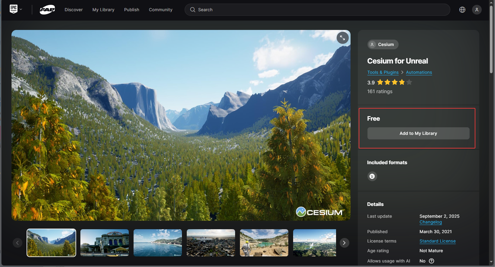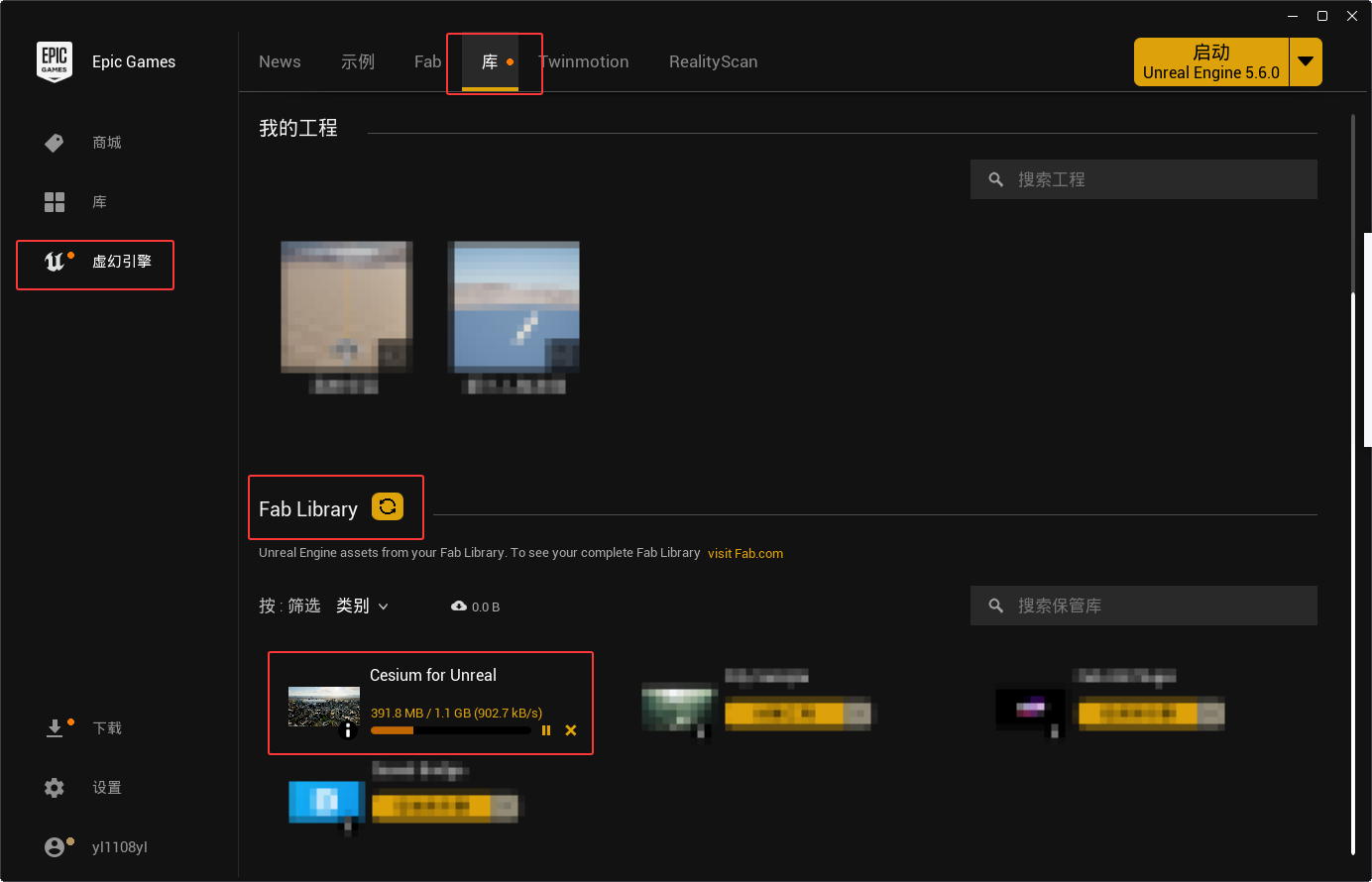 4. 回到库中,查看fab library,如果没有看到刚才加入的插件,点击一下刷新按钮