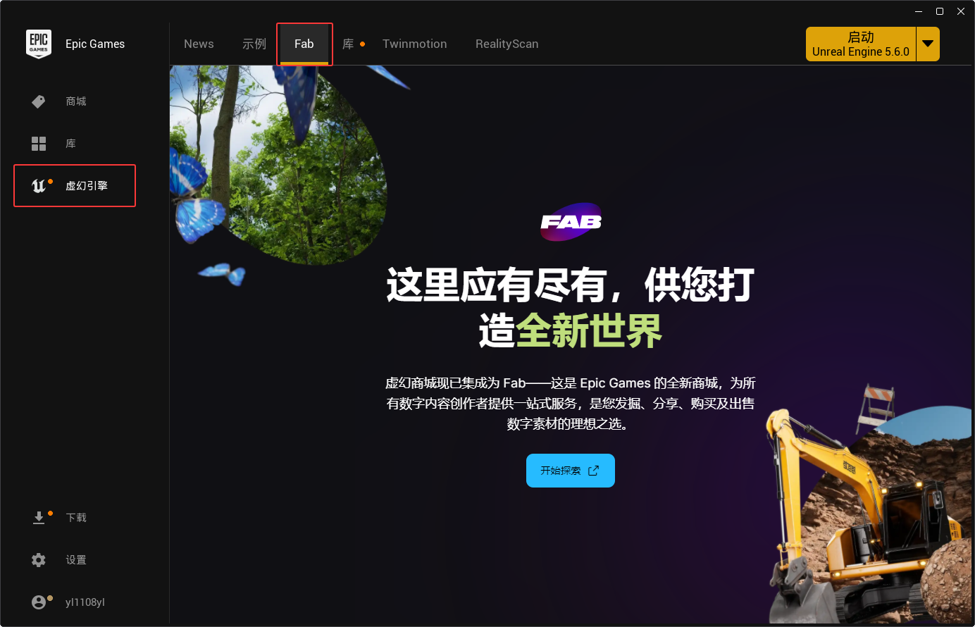 1. 首先打开Epic Games Launcher,进入Fab页面