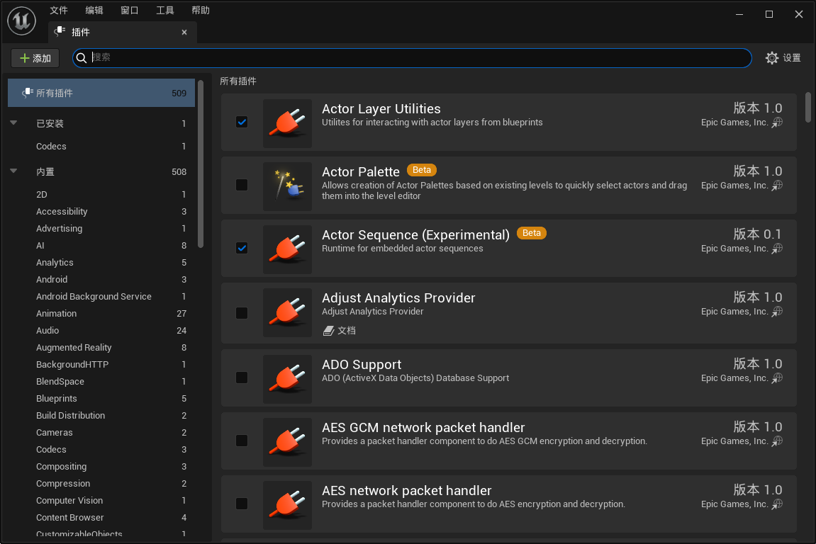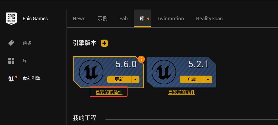 - 虚幻引擎-----库,选择你刚才安装选择的引擎,点击查看已安装的插件