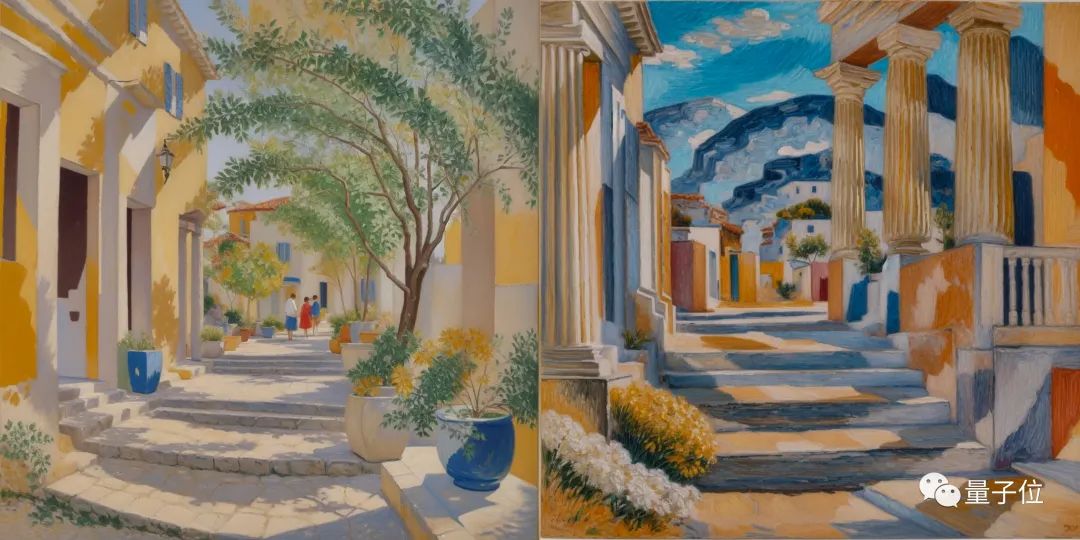 无论是建筑还是乡村田园、山光水色,AI绘出来的图都有模有样。