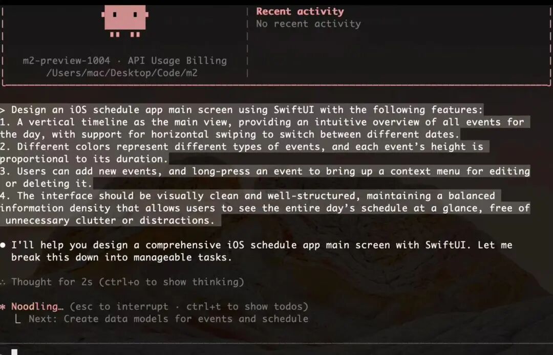 比如说,让 M2 开发一款日程管理的 iOS APP