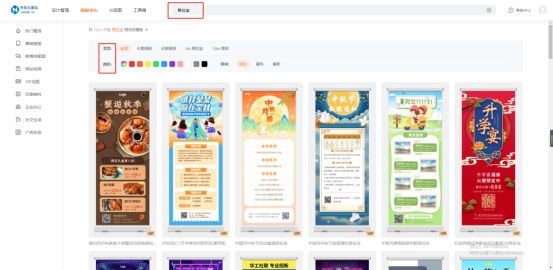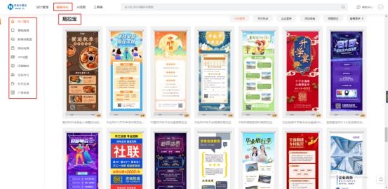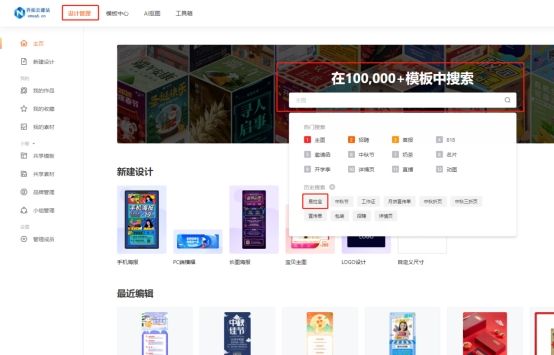 2. 在设计管理页面挑选一张自己想要的易拉宝图片模板。直接在搜索框内搜索“易拉宝”即可进准筛选模板。