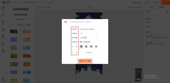 3. 选好模板后,就可设计制作了。例如,直接点击图片模板中要修改的内容进行编辑设置,像点击文字内容,即可在右侧的选项框中针对文字的字体、大小、排列、间距、颜色等进行设置,双击还可以编辑修改文字内容。