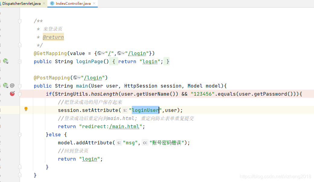 login接口打断点,看这个整个过程是怎么进行的,以前讲过参数的确定过程以及返回值的处理过程,我们看一下整个页面的跳转过程