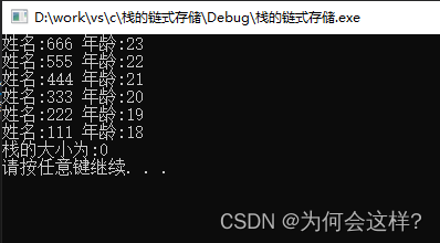 printf("栈的大小为:%d\n", size);