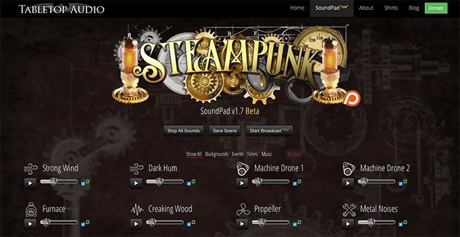 声音包可以下载并使用在你的混音器的选择,或者你可以使用一个创建氛围笔记本电脑和一个web浏览器。 主题包括蒸汽朋克,黑色电影、荒地、未来城市(网络朋客),和黑暗森林。