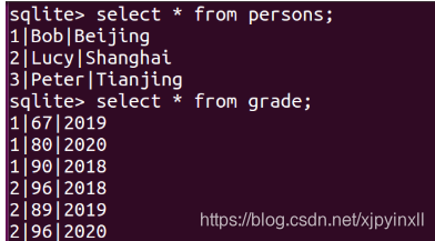 select person.id,name,addr,score,year from person,grade where person.id=grade.id; //person.id/grade.id这样写不会报二义性的错误