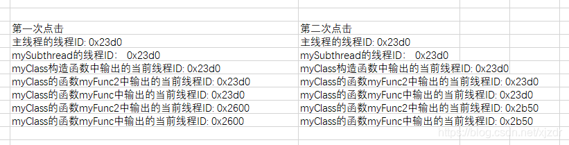 myClass的函数myFunc2中输出的当前线程ID: 0x2b50