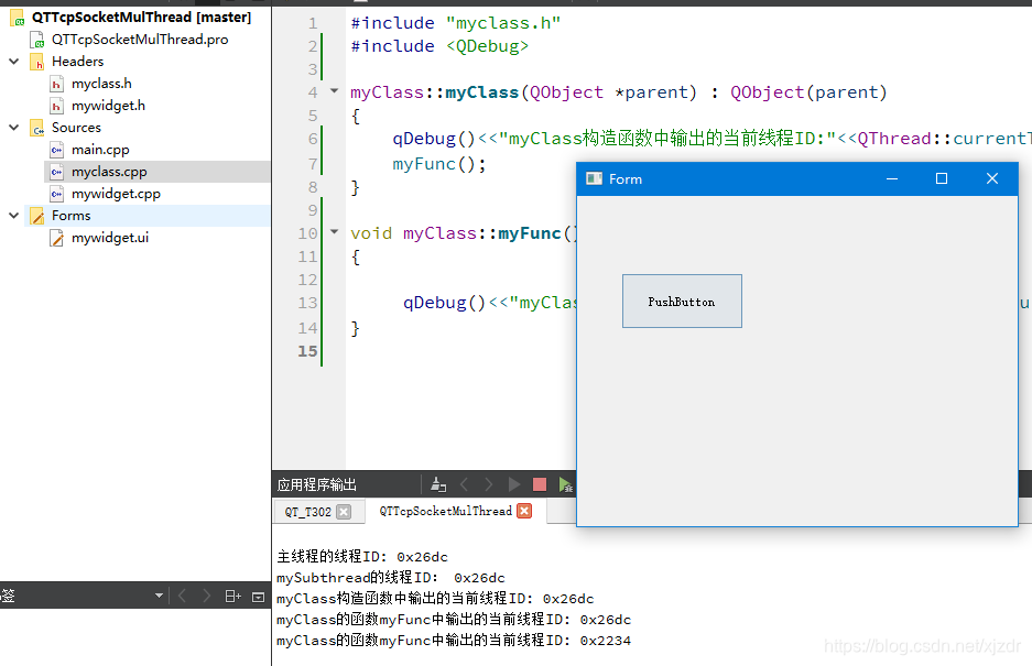 qDebug()<<"myClass构造函数中输出的当前线程ID:"<<QThread::currentThreadId();
