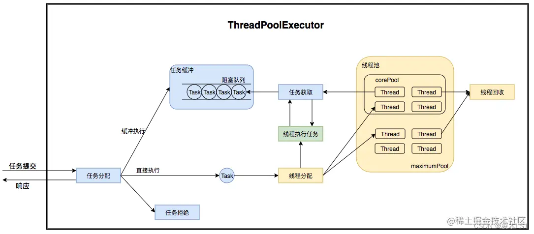 Java.util.concurrent.ThreadPoolExecutor 类就是 Java 对线程池的默认实现,开发中推荐使用ThreadPoolExecutor 而不是Excurors。