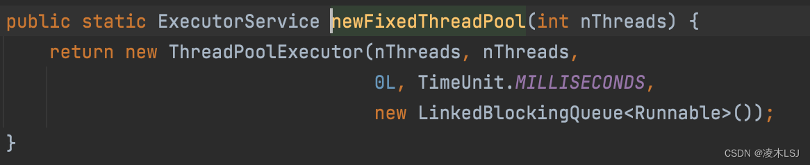 基于链表的无界阻塞队列(其实最大容量为Interger.MAX),按照FIFO排序。、当线程池中线程数量达到corePoolSize后,再有新任务进来,会一直存入该队列,而不会去创建新线程直到maxPoolSize。