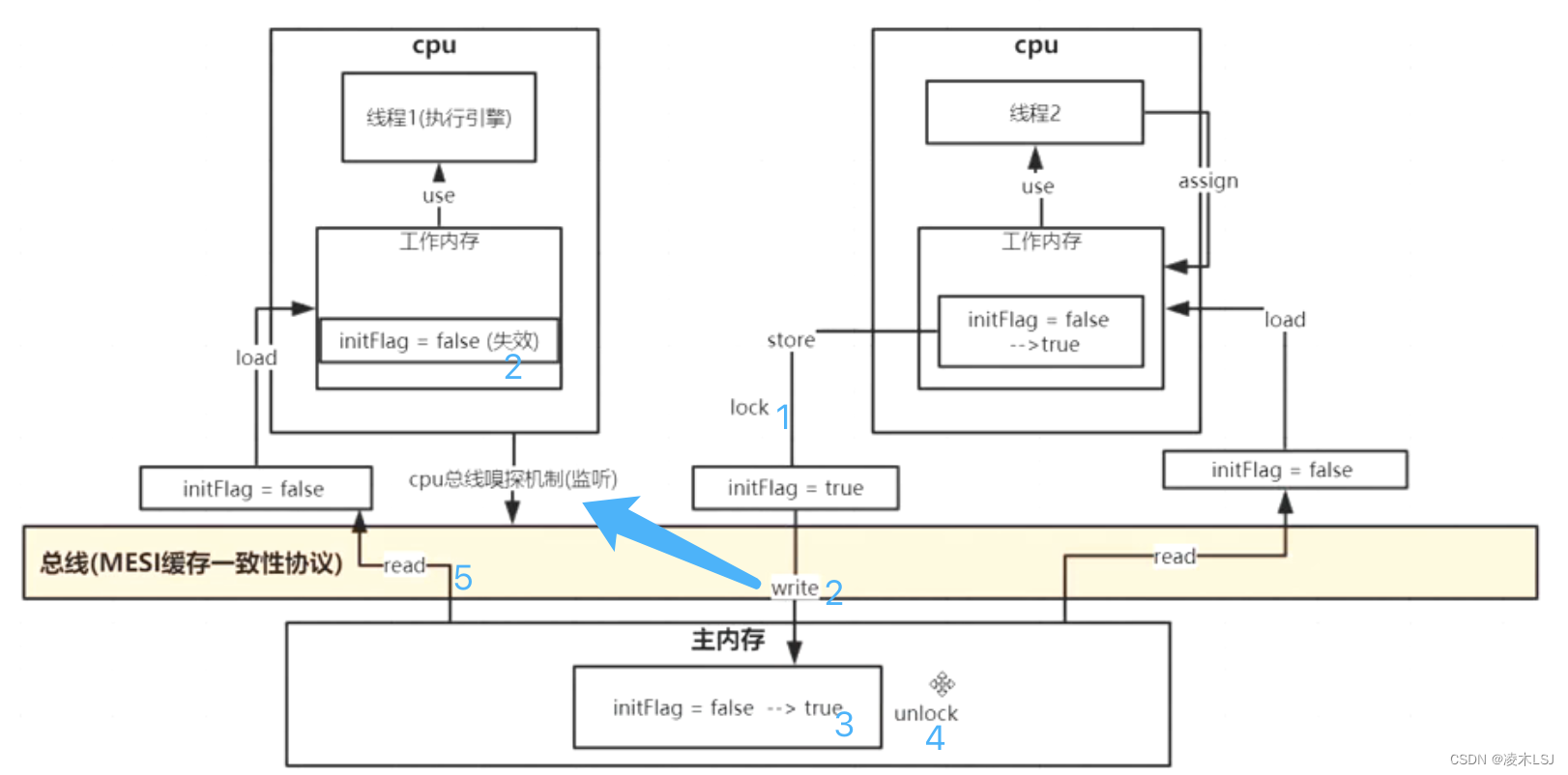 查看AQS源码可以知道,当 state 值为 1 的时候表示当前锁已经被某线程占用,除非等占用的锁的线程释放锁后将 state 置为 0,否则其它线程无法获取该锁。这里的 state 变量用 volatile 关键字保证其在多线程之间的可见性。
