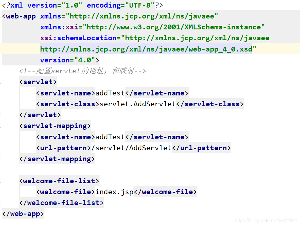 Servlet的调用是在web.xml中配置的。在项目调用url-name设置的请求的时候,会加载servlet-name下的servlet类的方法。访问的时候调用~/addAction.action即可通过servlet调用需要的Action