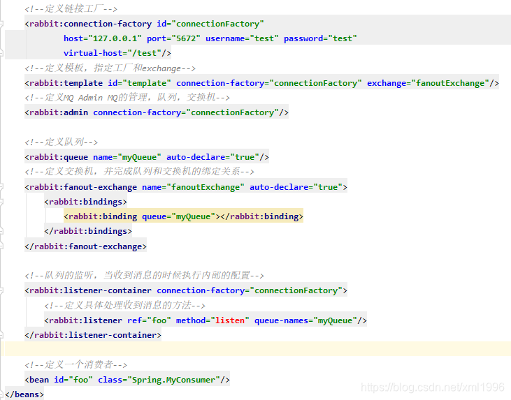 Spring提供了AMQP的一个实现,并且spring-rabbit是RabbitMQ的一个实现,下面给出订阅者模式的事例配置如下: