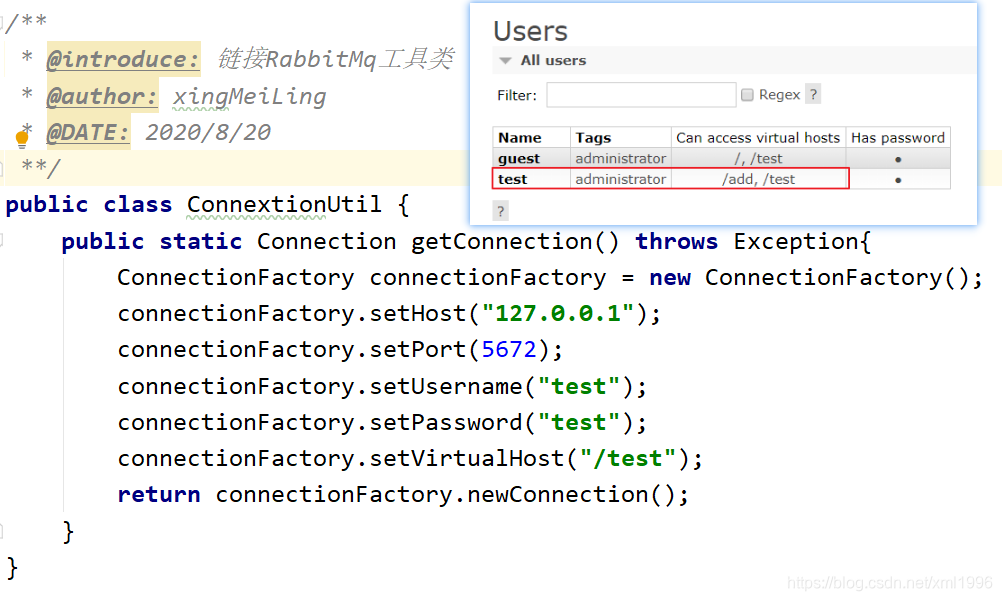 创建连接工厂ConnectionFactory,设置服务地址127.0.0.1,端口号5672,设置用户名、密码、virtual host