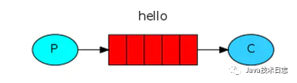 功能:一个生产者P发送消息到队列Q,一个消费者C接收