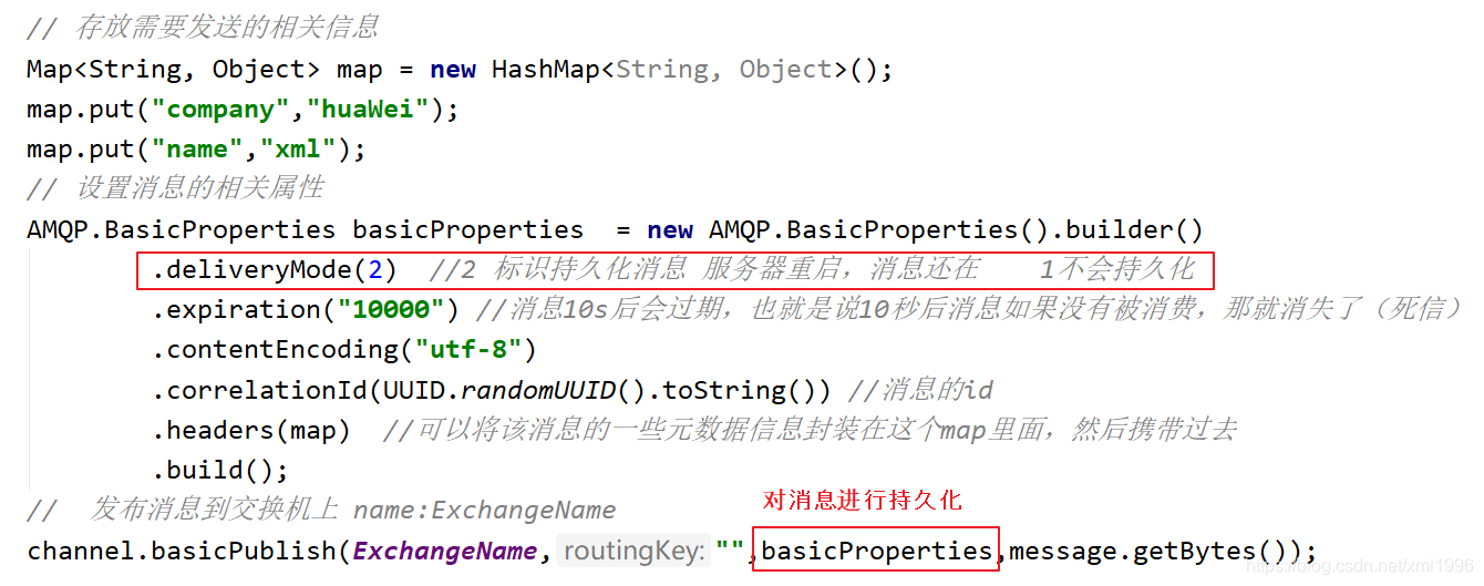 从消息生产端--->exchange: 保证在exchange可持久化的参数