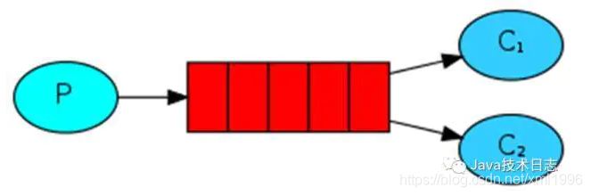 功能:一个生产者,多个消费者,每个消费者获取到的消息唯一,多个消费者只有一个队列