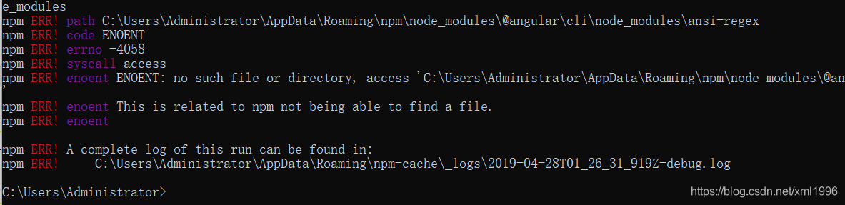 C:\Users\idomyway\AppData\Roaming\npm\node_modules——删除此路径下的@angular文件
