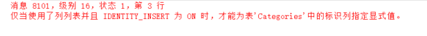 问题一:仅当使用了列表并且IDENTITY_INSERT为ON时,才能为表中的标识列制定显示值