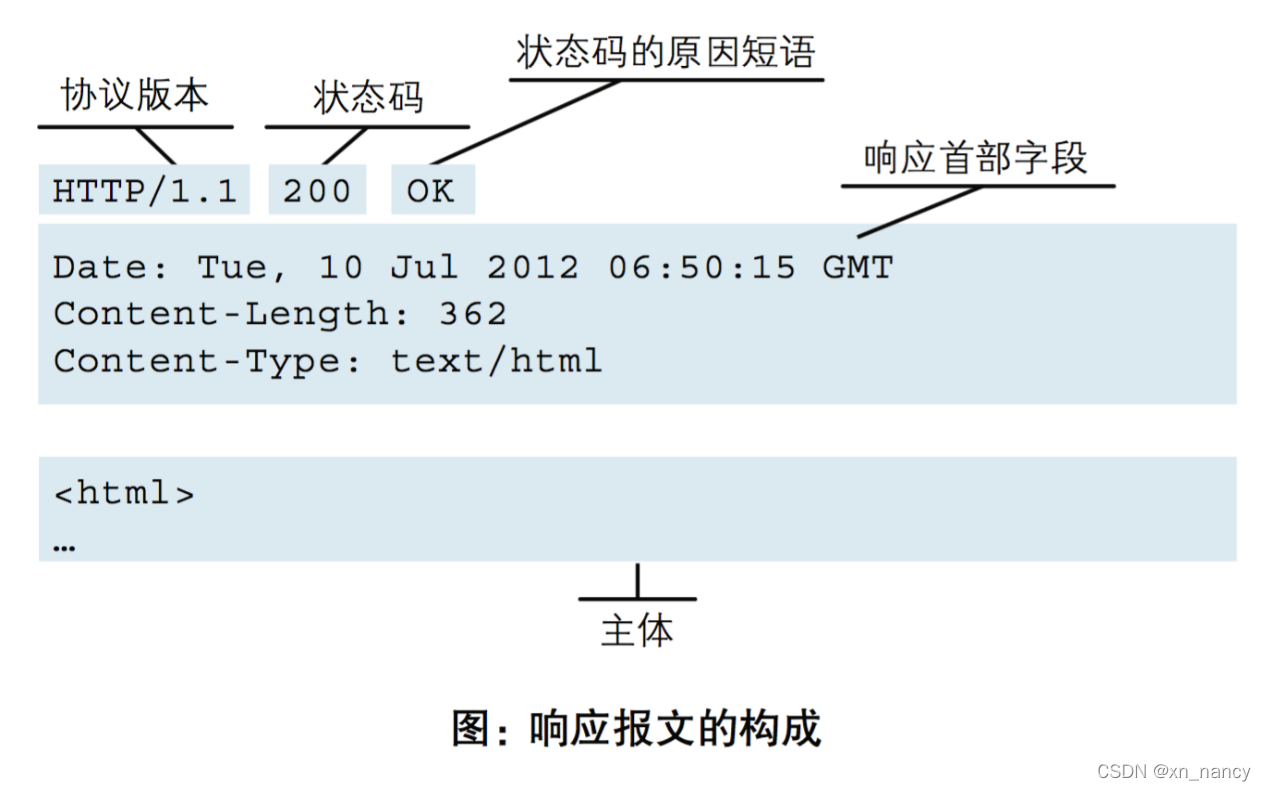 响应起始行:HTTP/1.1 200 OK, 协议、状态