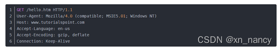 通过TCP套接字,客户端向Web服务器发送一个文本的请求报文,一个请求报文由请求行、请求头部、空行和请求数据4部分组成,该请求报文作为TCP三次握手的第三个报文的数据发送给服务器。