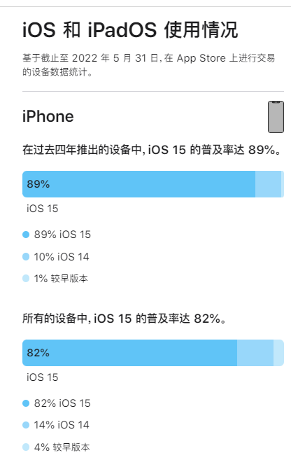 3)其次根据苹果官网数据App Store - 支持 - Apple Developer查看市场占比较高的系统(2022年5统计);