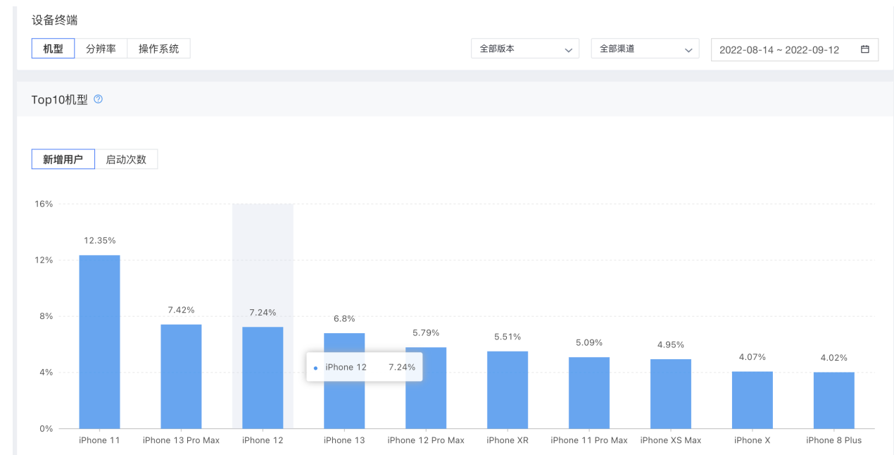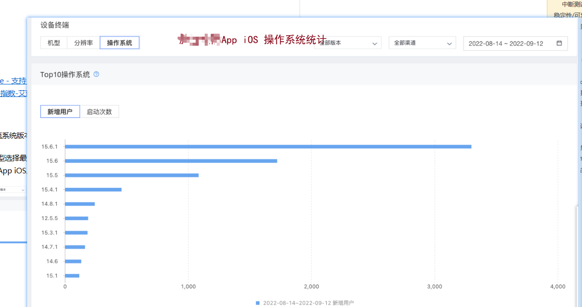 2)自家公司产品后台数据,下图是友盟统计的XXXX App iOS用户占比分布(2022年统计数据)