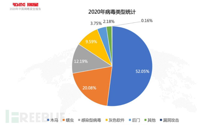 2020年病毒类型统计,来源:瑞星2020年中国网络安全报告