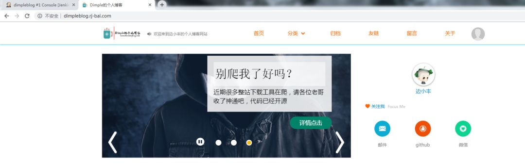 啊,就是这样,能访问到,说明没啥子问题,说真的这个博客做的还是蛮不错的,而且看上去开源的原因也是作者被逼无奈,哈哈