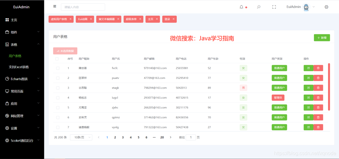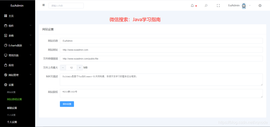 EuiAdmin是基于Vue+Element等组件联合开发的一个免费的开源后台,此后台免费开源,可以直接免费使用。你可以在文章底部进行下载和体验。