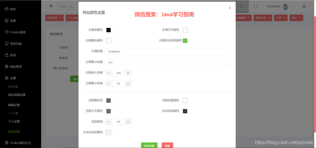 可以自定义网站基础颜色、菜单颜色等
