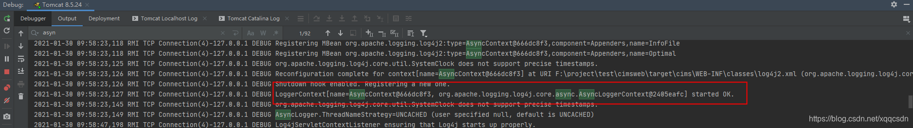 启动之后看log4j2线程和启动日志,有以下两种情况说明是成功了: