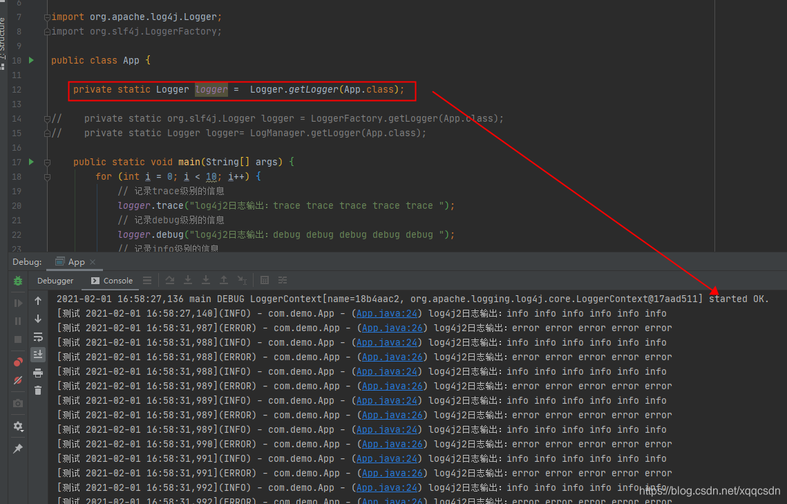 private Logger logger = Logger.getLogger(Demo.class);