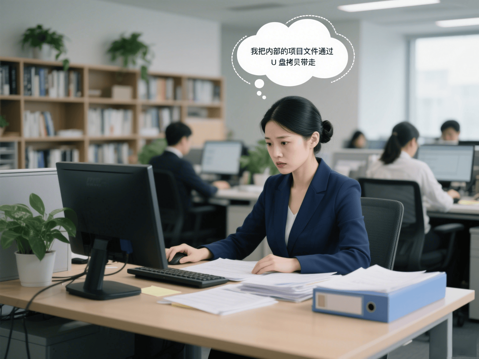 在一家研发型企业,员工李杰负责项目中的核心数据管理。一天,他因个人原因决定辞职,并打算将一些公司内部的项目文件通过U盘拷贝带走。